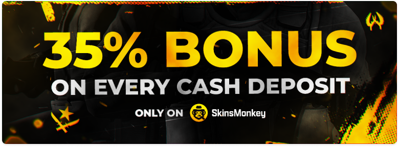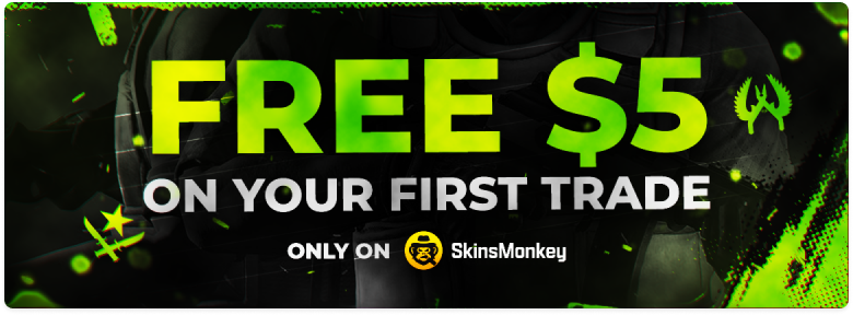 Truy cập SkinsMonkey qua link của chúng tôi để nhận ngay $5 cho giao dịch đầu tiên + 35% bonus mỗi lần nạp tiền. Skin giá rẻ, an toàn, giao dịch tức thì.